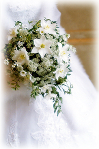 挙式は優雅で清純に、パーティーは微笑みいっぱいに花とドレスを着る。 |